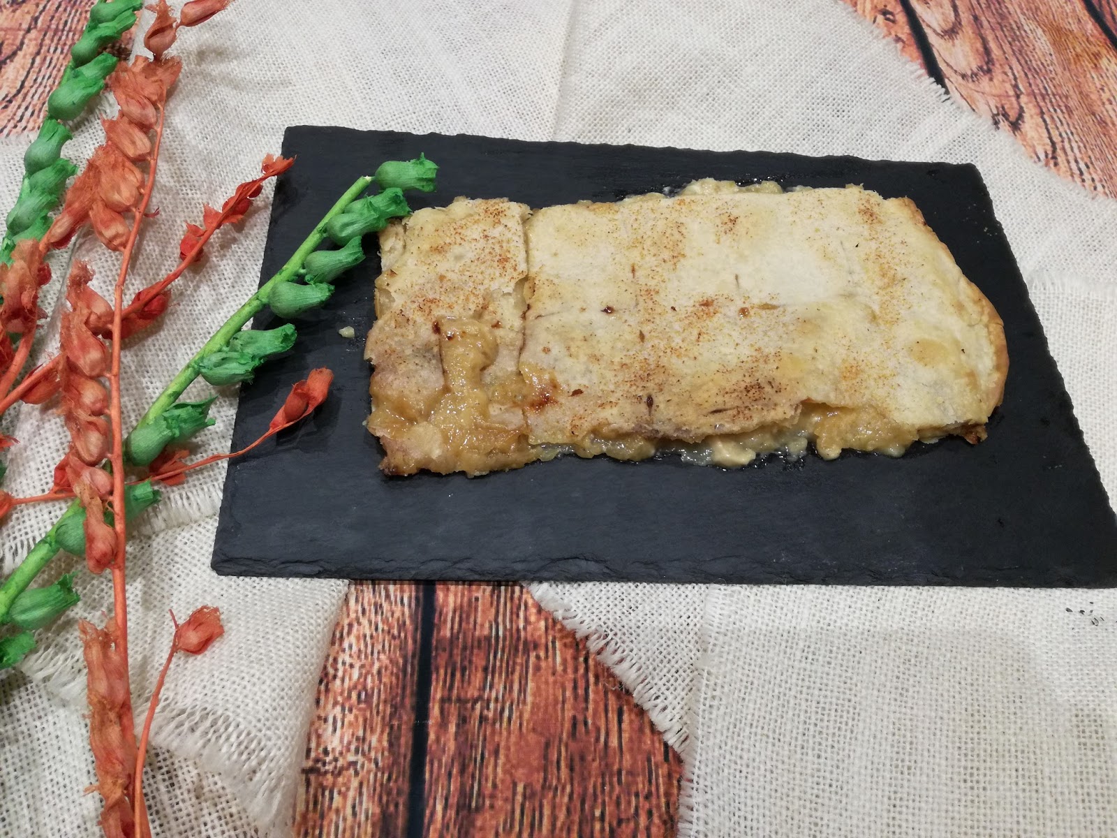 en casa, ya que está muy buena. Consiste en dos capas de masa de pan plano con